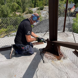 Den nedersta delen av tornet har stålborstats och målats i svart för att harmoniera med tornets rostfärgade utseende. Förhoppningen är att vi längre fram även ska kunna måla resten av tornet.